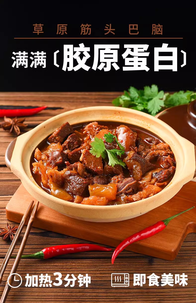 筋头巴脑,内蒙古牛肉牛筋,加热即食